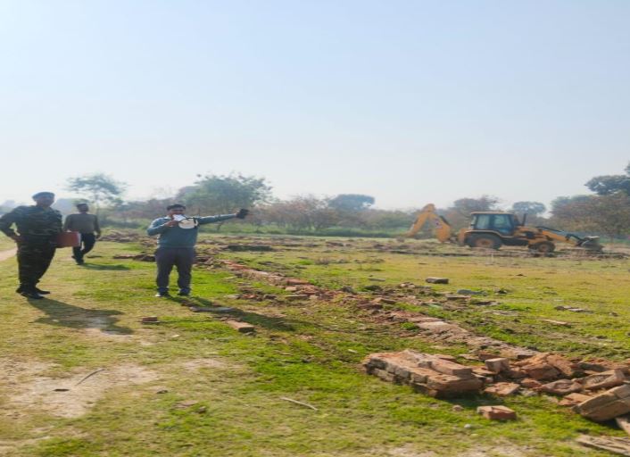 ग्राम प्रतापपुरी हरी – 9 बीघा में विकसित अवैध प्लाटिंग के विरुद्ध कार्रवाई।